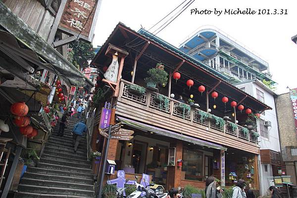 這次媽咪的生日選擇了『市下巷』做為落腳的據點,從網路上看來,這似乎是一棟非常美麗的建築物,一、二樓是用石頭堆砌而成的石頭屋,三樓則是加蓋的水泥建築,屋前則是依季節性擁有美麗櫻花樹的一座小公園,更是偶像劇《櫻野3加1》的拍攝現場,老闆黃先生甚至自傲這是一棟冬暖夏涼的九份最美麗的房子,無奈九份特有的石頭屋造型因為現在年輕一輩的修繕師傅在數量以及技術上均略顯不足,因此更顯『市下巷』的可貴之處!